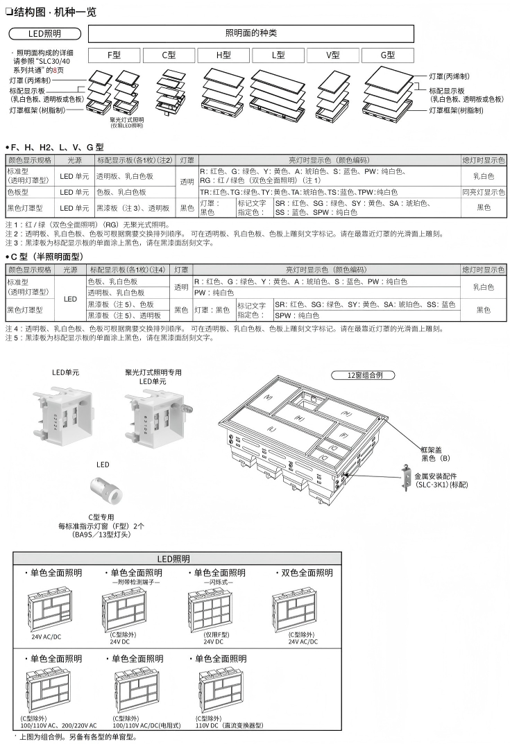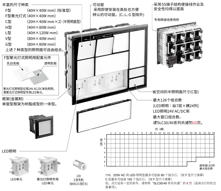 组合式指示灯 7种照明面(40mm正方形)可供选择 使用电压范围广 IP40