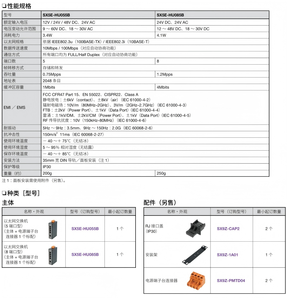 有关详细信息,请参阅产品样本及其他相关文件:SX5E型 以太网交换机、SX5E Unmanaged Switches Catalog