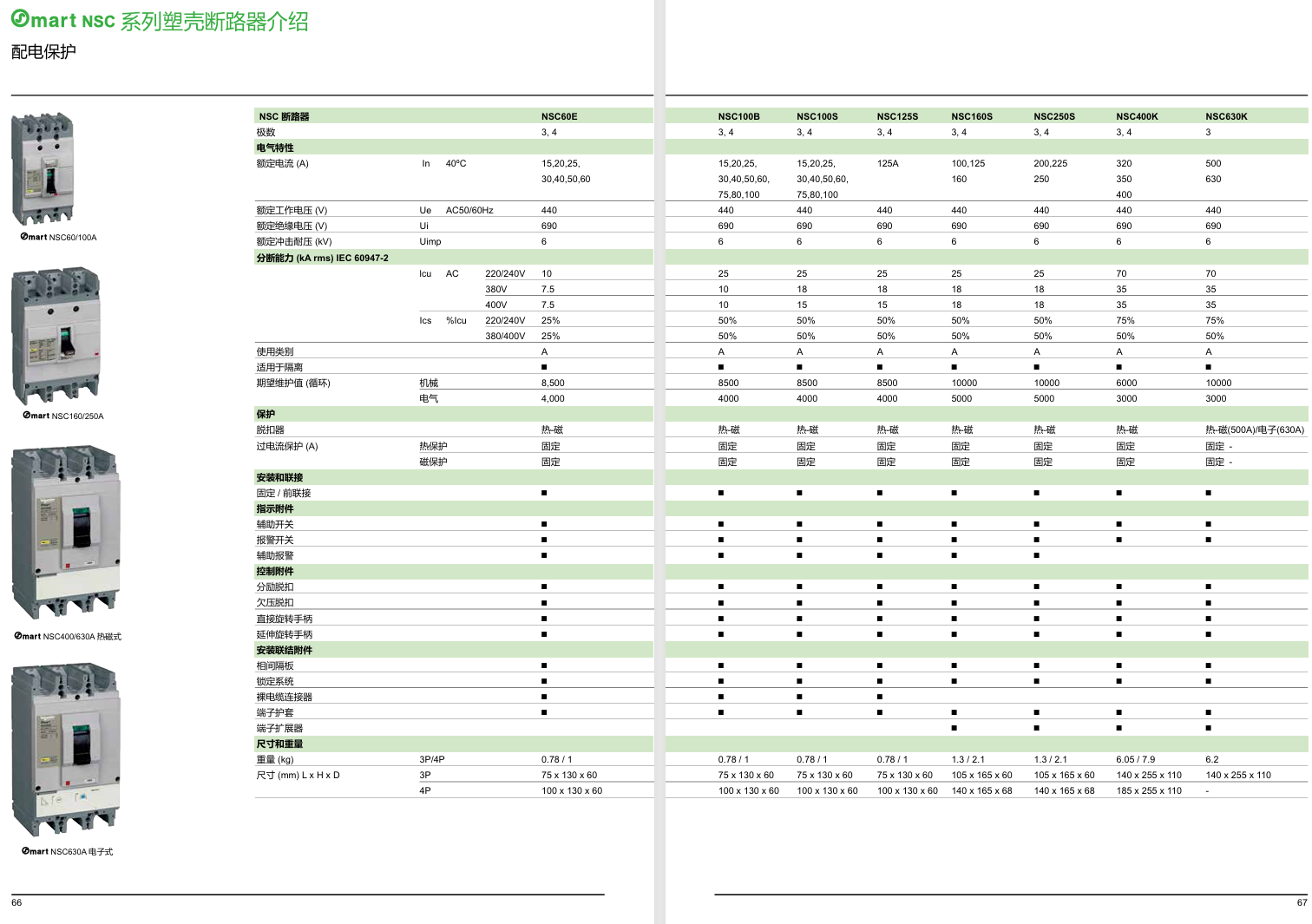 首页 施耐德 低压配电产品设备 断路器及开关 Osmart NSC 塑壳断路器 Osmart NSC 塑壳断路器 适于OEM客户的塑壳断路器 15~630A 60/100小壳架产品,贴合OEM客户的小电流小尺寸应用 160/250A产品共享一种尺寸,方便升级互换 400/630A大电流产品使用双旋转触头设计,优越的限流能力大大降低了短路电流对设备的破坏 断路器隔离位置具有机械指示,可靠指示状态 附件模块化安装,可自由更换 认证齐全,绿色环保 : CCC,CE,CCS(100A),RoHS(250A) 有关详细信息,请参阅产品样本及其他相关文件:Osmart NSC | Schneider Electric、Osmart系列低压配电产品 中文产品目录 (1.11) 分类: 断路器及开关 品牌: 施耐德 描述 用户评价 (0) 产品特性 作为机械设备进线总开关 额定电流:全系列15~630A 电压等级:550V(15~250A)、440V(250A~630A) 分断能力:E7.5KA、B10KA、S18KA、K35KA 脱扣单元:热磁式(配电保护)、单磁式(电动机保护) 极数:3P/4P 安装方式: 固定式安装方式,可水平,垂直,平躺安装,不影响电气性能环境温度:-25℃~+70℃,高于50℃时应考虑降容(630A下40℃应考虑降容) 产品信息 评价 目前还没有评价 成为第一个“Osmart NSC 塑壳断路器” 的评价者取消回复您的邮箱地址不会被公开。 必填项已用 * 标注您的评级 * 评价… 完美 很好 普通 还行 极差 名称 *邮箱 *您的评价 * 在此浏览器中保存我的显示名称、邮箱地址和网站地址,以便下次评论时使用。 提交 相关产品 EasyPact MVS空气断路器 断路器及开关