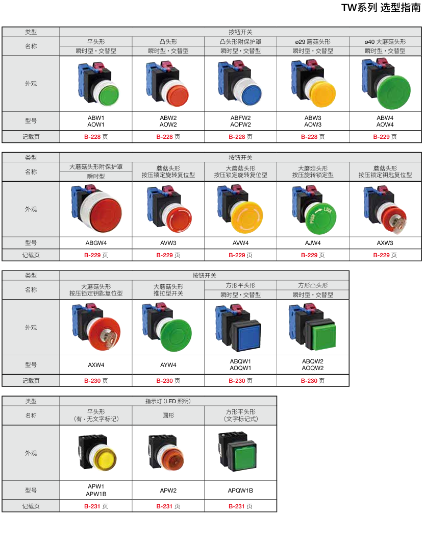 首页 和泉 人机界面 按钮开关 按钮开关·指示灯 TW系列 控制元器件 TW系列 控制元器件 Φ22 工业用标准型 银触点10A IP65 重视耐环境性的一体型·Heavy Type(耐受力型)。 采用手指安全型结构SS端子。 圆形压接端子可大幅度削减接线工时。(全电压型指示灯除外),保护等级: IP65( IEC 60529),UL、 CSA、 CCC认证,符合 EN标准。 有关详细信息,请参阅产品样本及其他相关文件:ø22 TW系列 控制元器件 分类: 按钮开关·指示灯 品牌: 和泉 描述 用户评价 (0) 产品信息 评价 目前还没有评价 成为第一个“TW系列 控制元器件” 的评价者取消回复您的邮箱地址不会被公开。 必填项已用 * 标注您的评级 * 评价… 完美 很好 普通 还行 极差 名称 *邮箱 *您的评价 * 在此浏览器中保存我的显示名称、邮箱地址和网站地址,以便下次评论时使用。 提交 相关产品 CS型 凸轮开关 按钮开关·指示灯 HW系列(Push-in端子型) 按钮开关·指示灯 平面镶嵌框型 LBW系列 控制元器件 按钮开关·指示灯 CW系列(Push-in端子型) 按钮开关·指示灯
