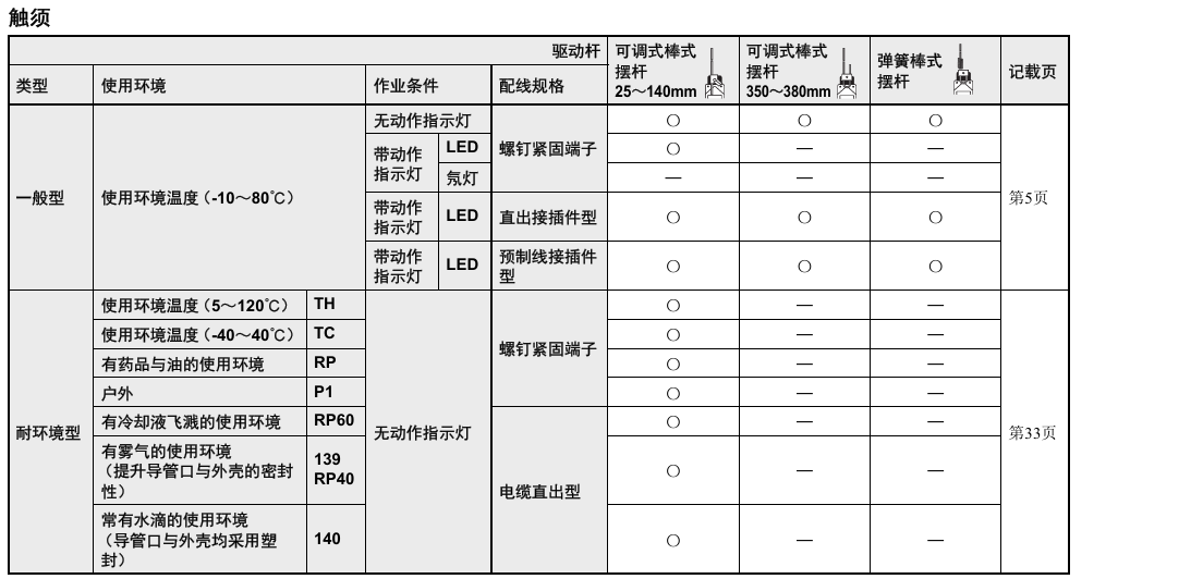 首页 欧姆龙 开关 限位开关 WL-N / WLG2回路限位开关 WL-N / WLG2回路限位开关 可根据使用环境和用途进行选择,2回路限位开关 旋转摆杆型、柱塞型、触须型、叉式锁定摆杆型等多种头部形状(一般型) 可根据工件形状和动作从多样驱动杆中选择适合的形状 除一般检测产品外,还备有应对恶劣环境的耐环境型、适合焊接作业的防溅型以及高频使用的长寿命型产品 IEC的IP67保护结构 有关详细信息,请参阅产品样本及其他相关文件:WL-N/WL 产品规格书、WL-N/WLM-N 产品规格书、WL-N 产品样本 分类: 限位开关 品牌: 欧姆龙 描述 用户评价 (0) 产品特点 产品信息 评价 目前还没有评价 成为第一个“WL-N / WLG2回路限位开关” 的评价者取消回复您的邮箱地址不会被公开。 必填项已用 * 标注您的评级 * 评价… 完美 很好 普通 还行 极差 名称 *邮箱 *您的评价 * 在此浏览器中保存我的显示名称、邮箱地址和网站地址,以便下次评论时使用。 提交 相关产品 D4V-N面向中国市场的小型限位开关 限位开关