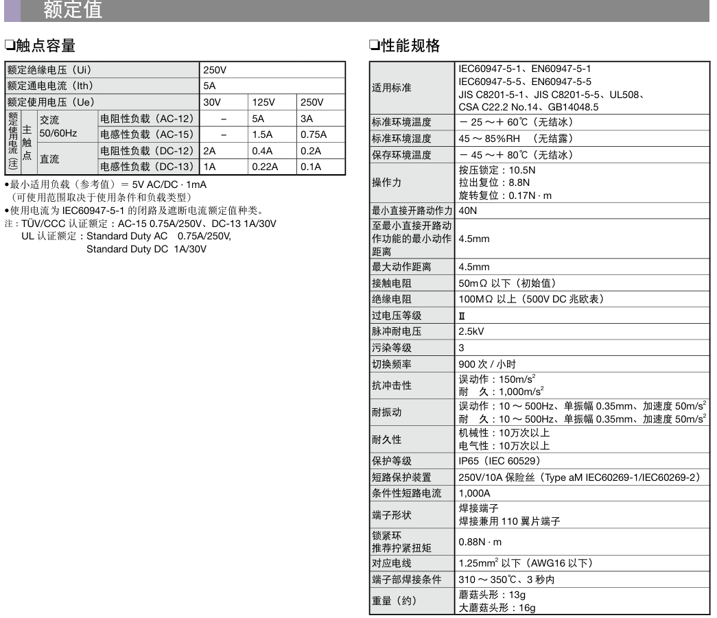 - 直接开路动作功能 (符合 IEC60947-5-5 :5.2 条、IEC60947-5-1 附件 K)
